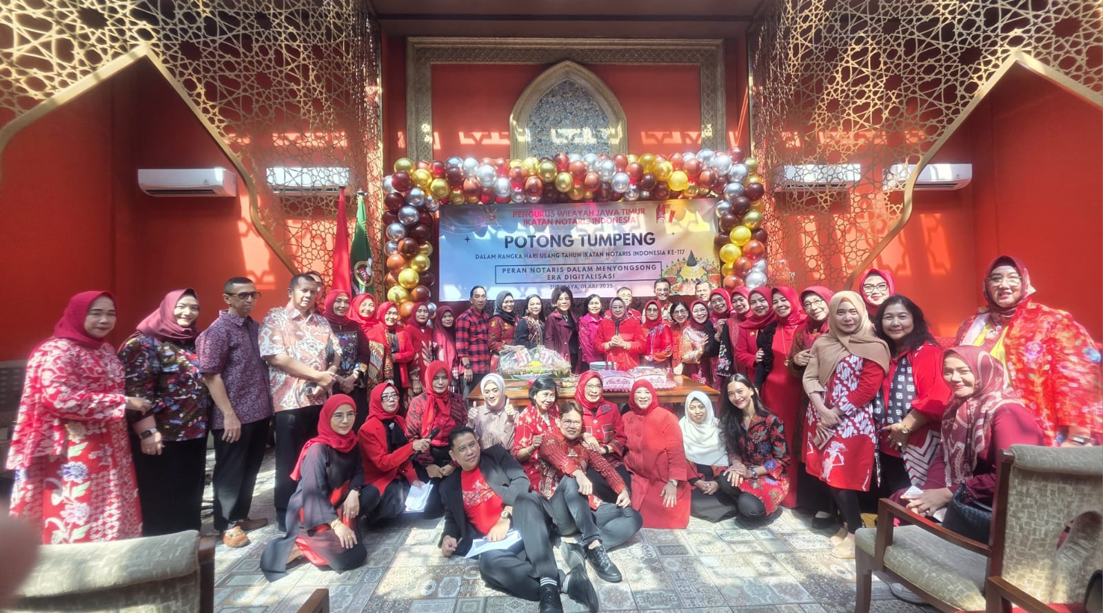 Surabaya, halonotariat.id – 117 tahun sudah Ikatan Notaris Indonesia (INI) berdiri, tepat di tanggal 1 Juli 2025, Pengurus Wilayah Jawa Timur (Pengwil Jatim) INI, turut ambil bagian merayakan potong tumpeng Hari Ulang Tahun (HUT) INI ke-117, di Larazeta Surabaya, walau Ketua Pengwil Jatim INI berhalangan hadir karena sedang menjalani pemulihan kesehatan.