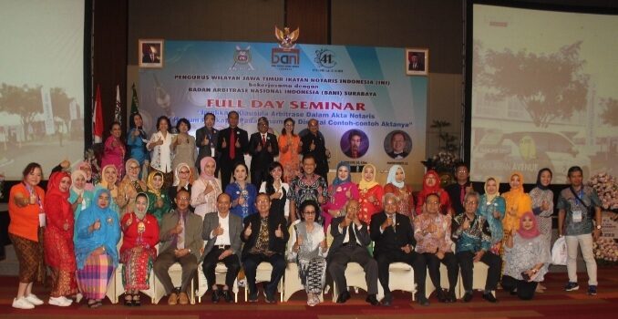 Surabaya, halonotariat.id – Tepat di usia 41 tahun Badan Arbitrase Nasional Indonesia (BANI) Surabaya (17/11/2022), bersama-sama Pengurus Wilayah Jawa Timur (Pengwil Jatim) Ikatan Notaris Indonesia (INI) menyelenggarakan Fullday Seminar di Dyandra Convention Center, dengan tema,"Implikasi Klausula Arbitrase Dalam Akta Notaris,...